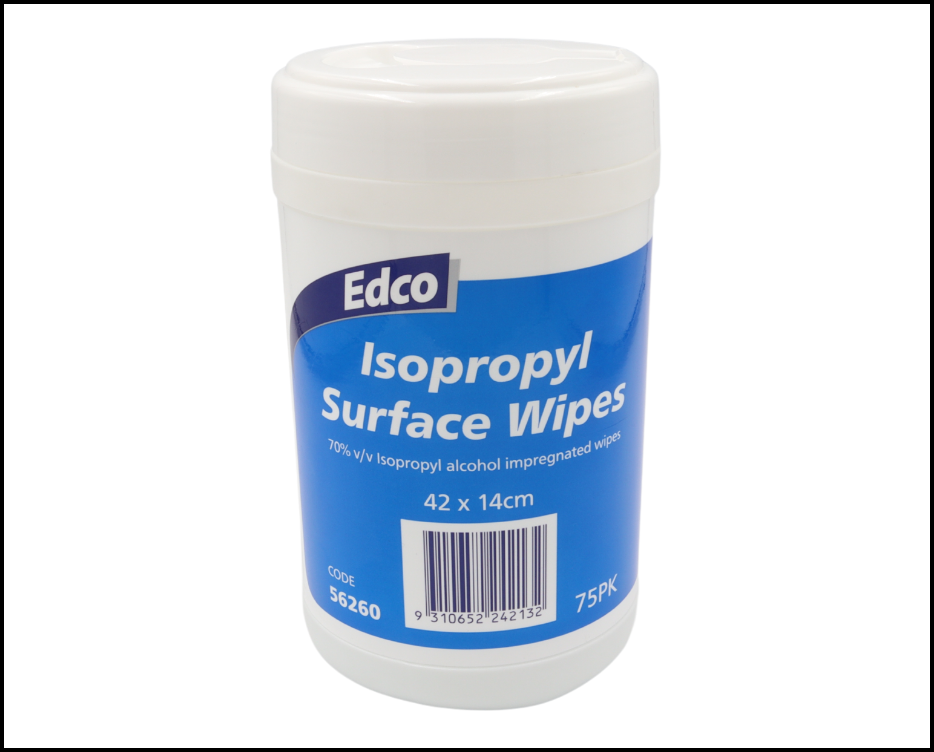 Edco Isopropyl Surface Wipes are a single use disinfecting wipe for use on hard surfaces that have already been cleaned. Suitable for use on most hard surfaces including stainless steel benches, trolleys, door handles and office equipment.