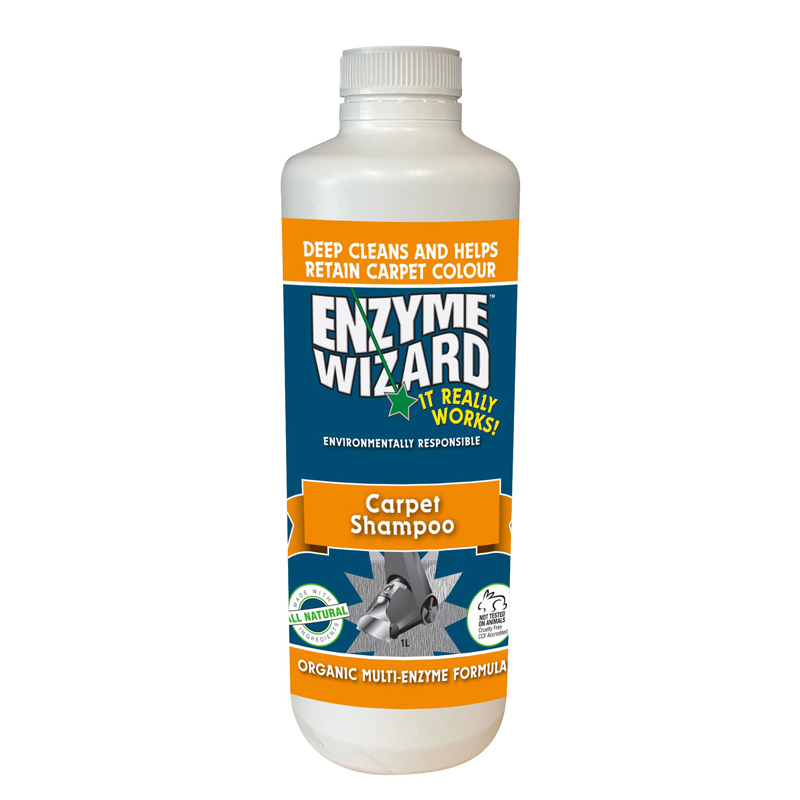 • Enzyme Wizard Carpet Shampoo is an all-natural, multi-enzyme formula designed to attack and loosen tough stains and dirt on the carpet.
