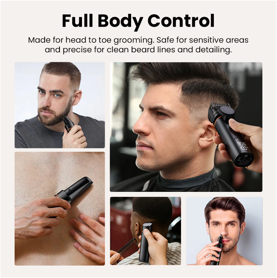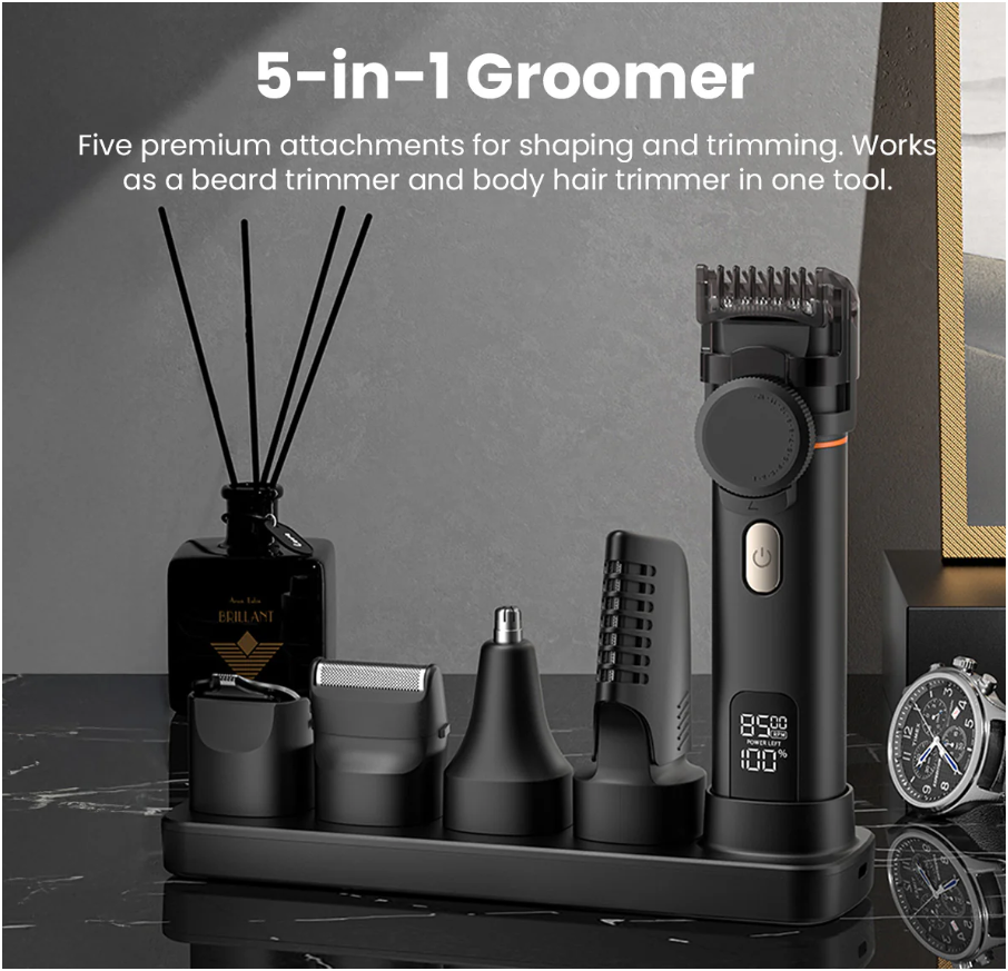 - 5 Tools in 1, the Ultimate Grooming Kit: Shape, trim, detail, edge, and refine with five premium head attachments. From sharp fades to smooth finishes, it is everything you need, in one compact station.