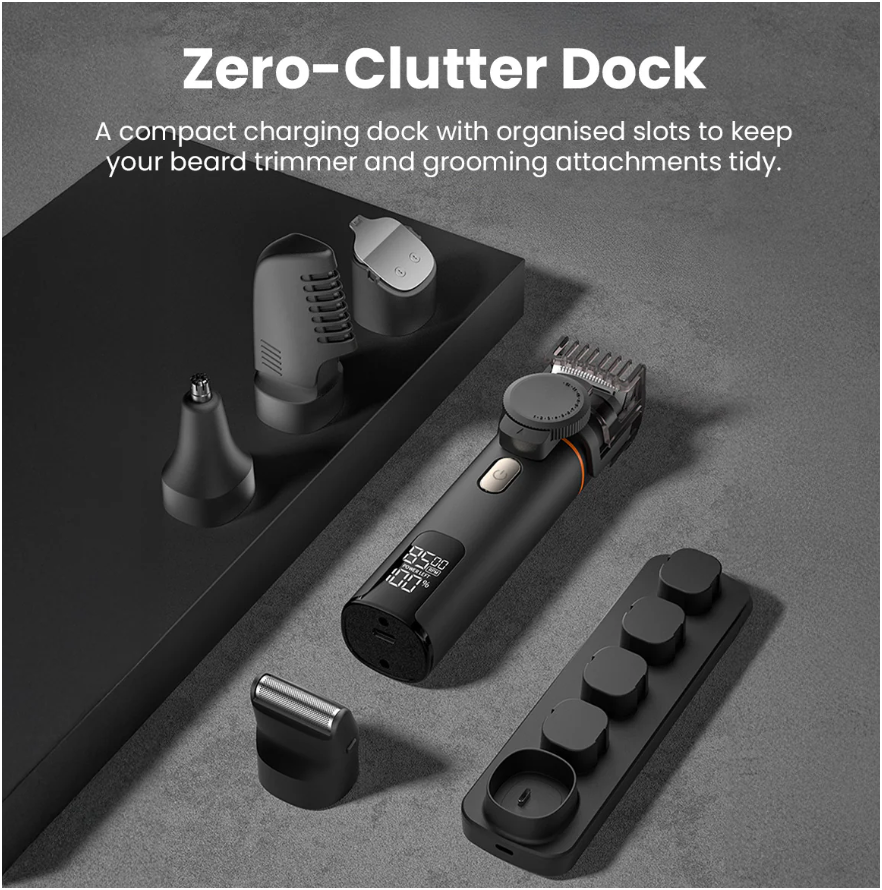- Rechargeable Docking Station with Smart Storage: A sleek, modern docking base keeps your trimmer charged and every attachment has its place, no clutter, no missing parts.