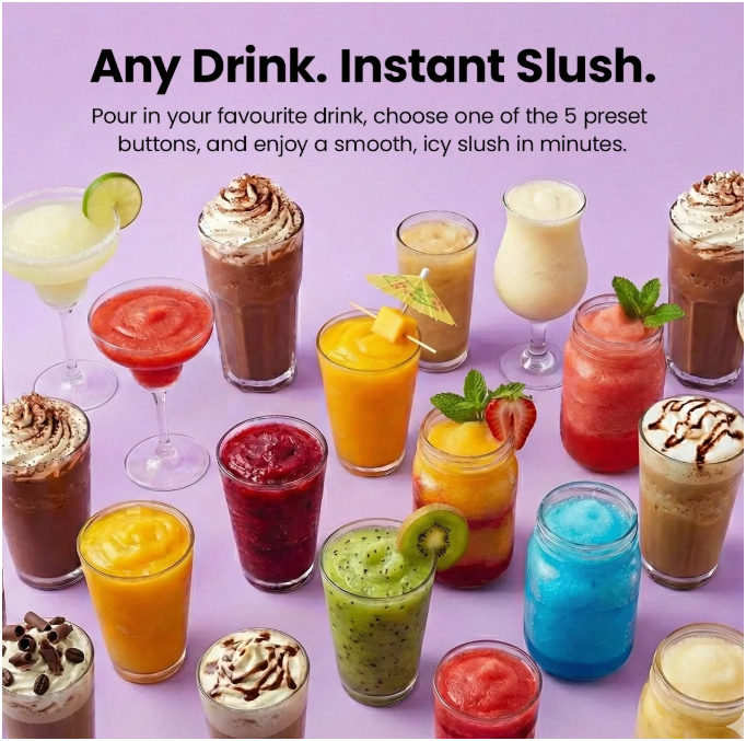 - Total Control Over What Goes In: Control the sugar, skip artificial syrups and mix your own flavours. From fruity slushies to frozen lemonades or cocktails, you decide exactly what you’re drinking.