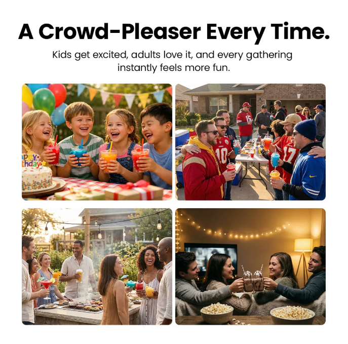 - A Everyday Crowd-Pleaser Everyone Gets Excited About: Kids lose their minds. Adults secretly love it just as much. Parties instantly feel more fun when slushies are involved. It’s not just a drink, it’s an experience.