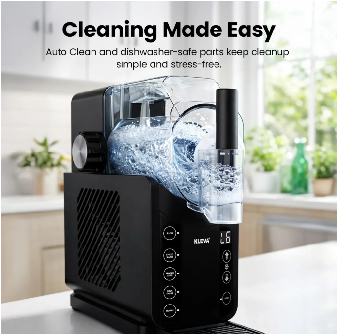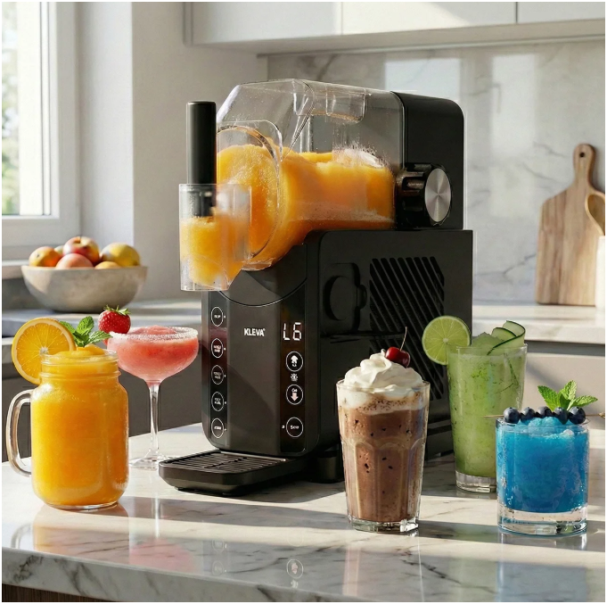 Running out for slushies is a hassle, blenders never get the texture right, and store-bought drinks are expensive and forgettable. When you’re hot and craving something truly refreshing, ordinary drinks just don’t satisfy. Meet the all-new KLEVA® Slushi’O Maker. With one touch, it turns almost any drink into a smooth, icy frozen treat that melts in your mouth and instantly quenches your thirst and completes the cravings. Each sip delivers a rush of cold, refreshing relief – bursting with flavour, perfectly textured, and unbelievably satisfying. It’s the kind of drink that makes you smile before you even realise it. Choose from five preset programs, adjust the cooling temperature to your liking, and enjoy slushies, milkshakes, thickshakes, frappes, and more whenever the craving hits. No ice. No blender. No mess. Just pour, press, and enjoy frozen drinks that feel exciting, indulgent, and impossible to put down.