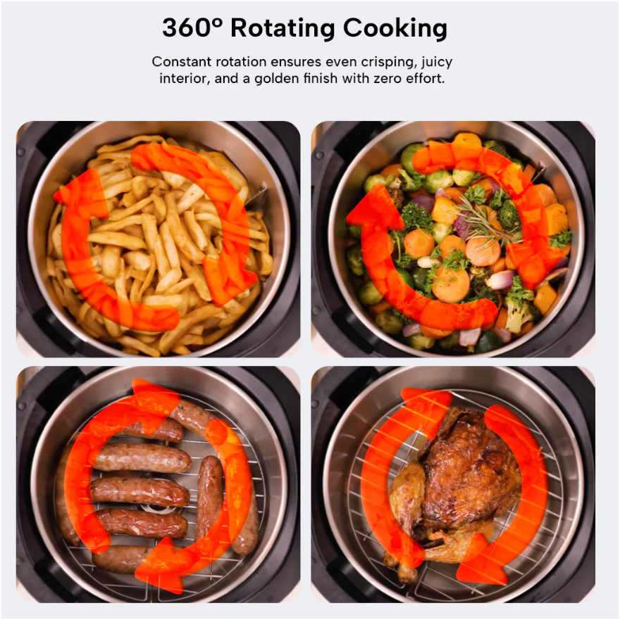 360° Rotating Cooking – Even crisping on all sides, completely hands-free