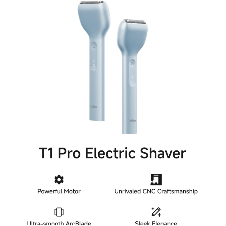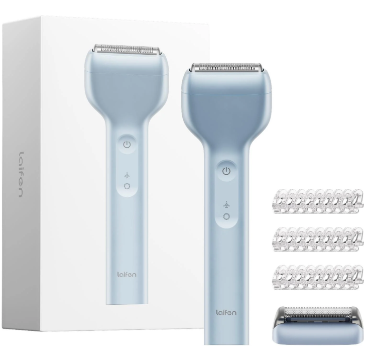 Laifen T1 Pro Electric Shaver Blue with Trimmer Heads Guards USB C Charging and Accessories