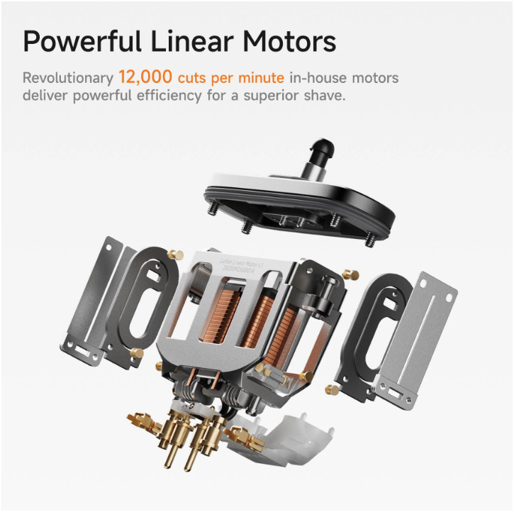 The high-speed linear motor delivers up to 12,000 cuts per minute, allowing it to handle thick and stubborn beards with ease. Real-time power adjustment ensures a smooth and tug-free shaving experience. The ultra-thin 0.055 mm foil and precision stainless steel blades improve shaving efficiency, while the dual shock absorption system provides a stable and comfortable grip.