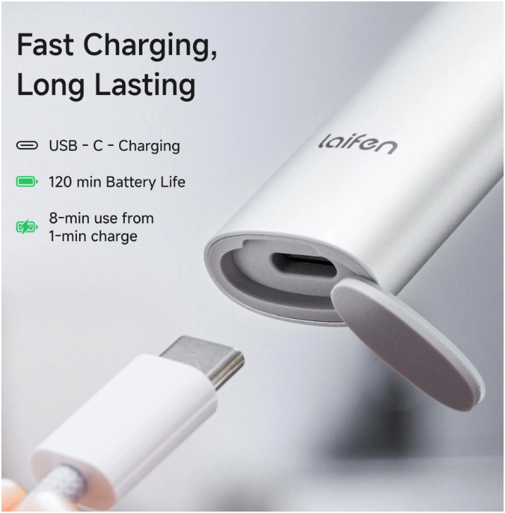 Enjoy up to 120 minutes of runtime on a full charge with USB-C fast charging. A 1-minute quick charge provides up to 8 minutes of use. Weighing only 93 g and measuring just 12 mm thick, the lightweight and ultra-slim design makes it ideal for travel. Travel Mode prevents accidental activation during transport.