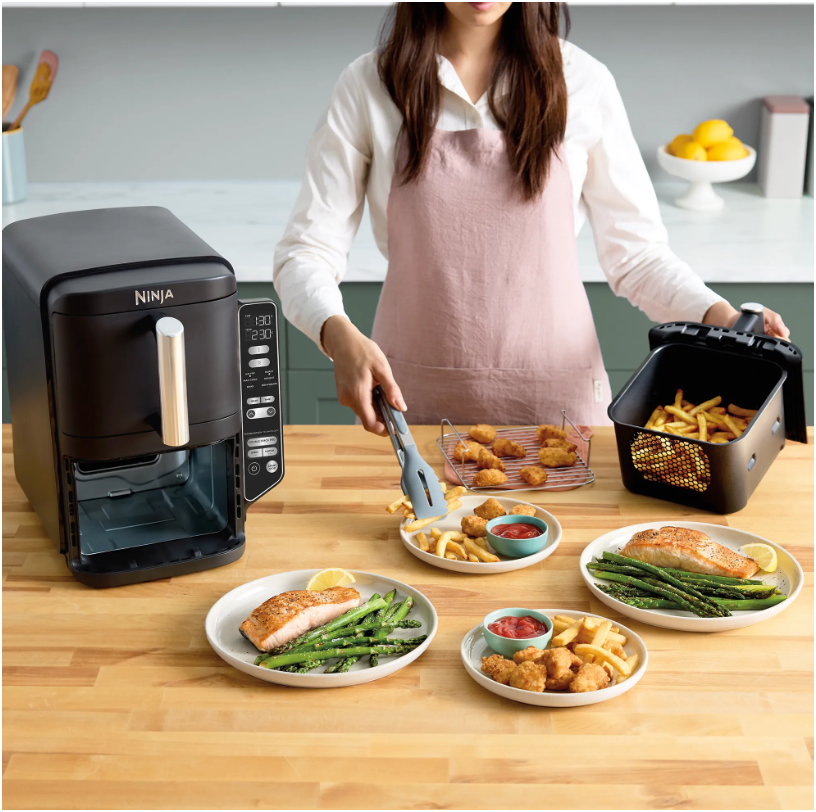 Meet the Ninja® DoubleStack™ XXL 2 Drawer Air Fryer, the only stacked 2 drawer air fryer that can cook up to 4 foods at once. Designed for efficiency, versatility and easier family sized meals, Ninja’s stacked 7.6L design maximises benchtop space while giving you the power and capacity of 2 air fryers in the footprint of one. Only Ninja has DoubleStack Air Frying technology that delivers the optimal air flow and even heat required to cook 4 foods at once for crispy, golden perfection every time. Simply load your veggies onto the crisper plate, insert the stacked meal rack into the drawer, and place your proteins on top to cook 2 different foods in one drawer. Two 3.8L drawers allow you to simultaneously prepare different dishes, making multitasking in the kitchen a breeze. Cook more food in a smaller footprint — easily fits 900g of wings in each drawer. Perfect for smaller kitchens, enjoy delicious homemade meals while keeping your benchtop clear of clutter.