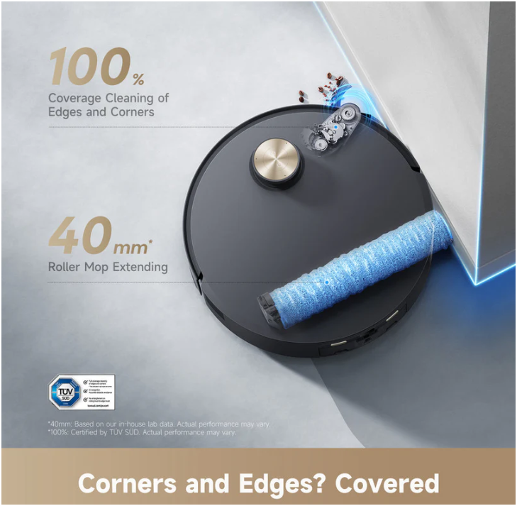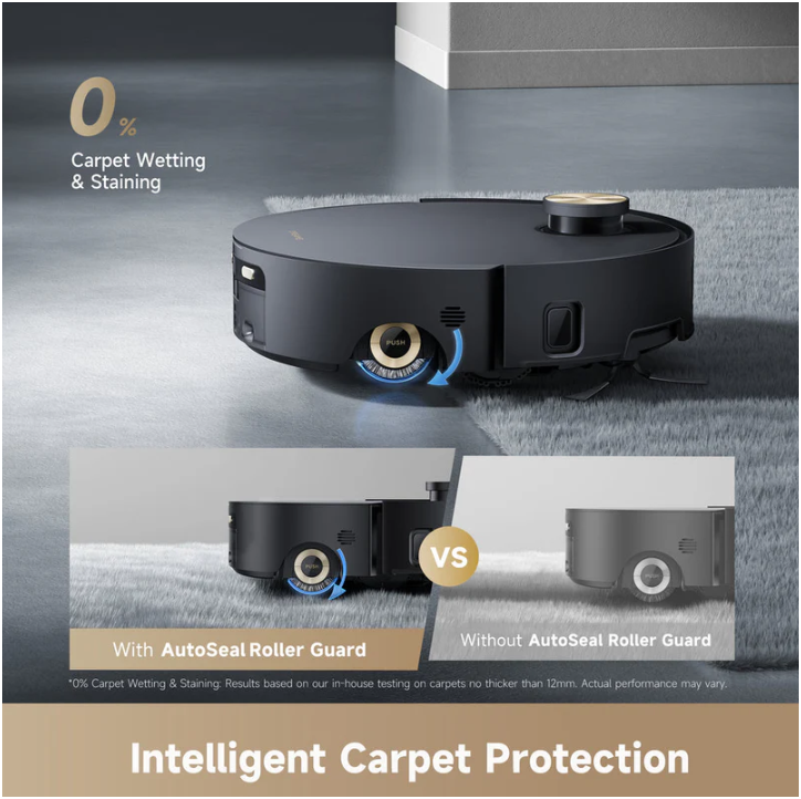Aqua10 Roller’s ProLeap™ system allows the robot vacuum to effortlessly clear thresholds, door tracks, U-shaped furniture, and steps up to 6cm*.