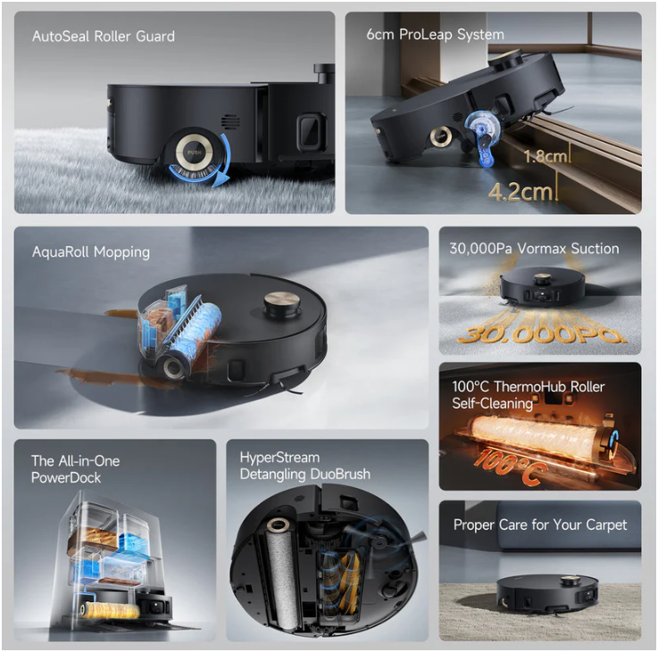 First of its kind AquaRoll™ Mopping robot vacuum with 6cm ProLeap™ System